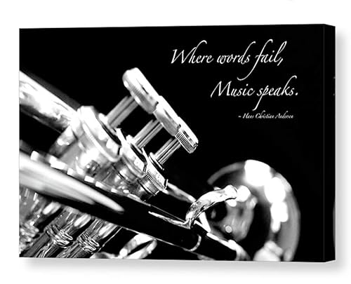 Amazon Com Trumpet Photo On Canvas Inspirational Quote About Music Gift Idea For Musician Unframed Black And White Wall Art Ready To Hang Handmade